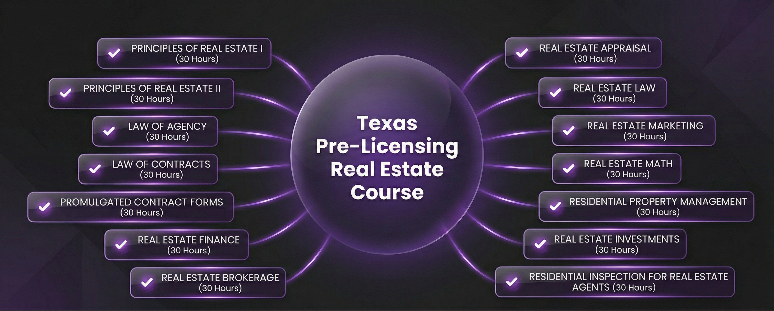 Everything you need to know about Texas real estate pre-licensing, course options, schedules, and enrollment at Sovereign Real Estate Academy.